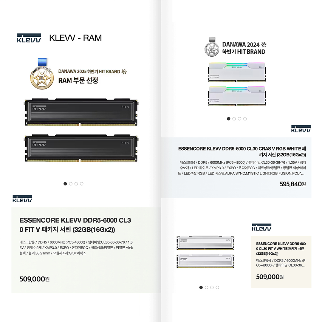 Once again, KLEVV memory product has been recognized with the “Danawa 2025 2H Hit Brand” award (RAM Category) by Danawa, a leading price comparison platform in Korea, reflecting the brand’s strong recognition and positive reputation in the Korean market.
